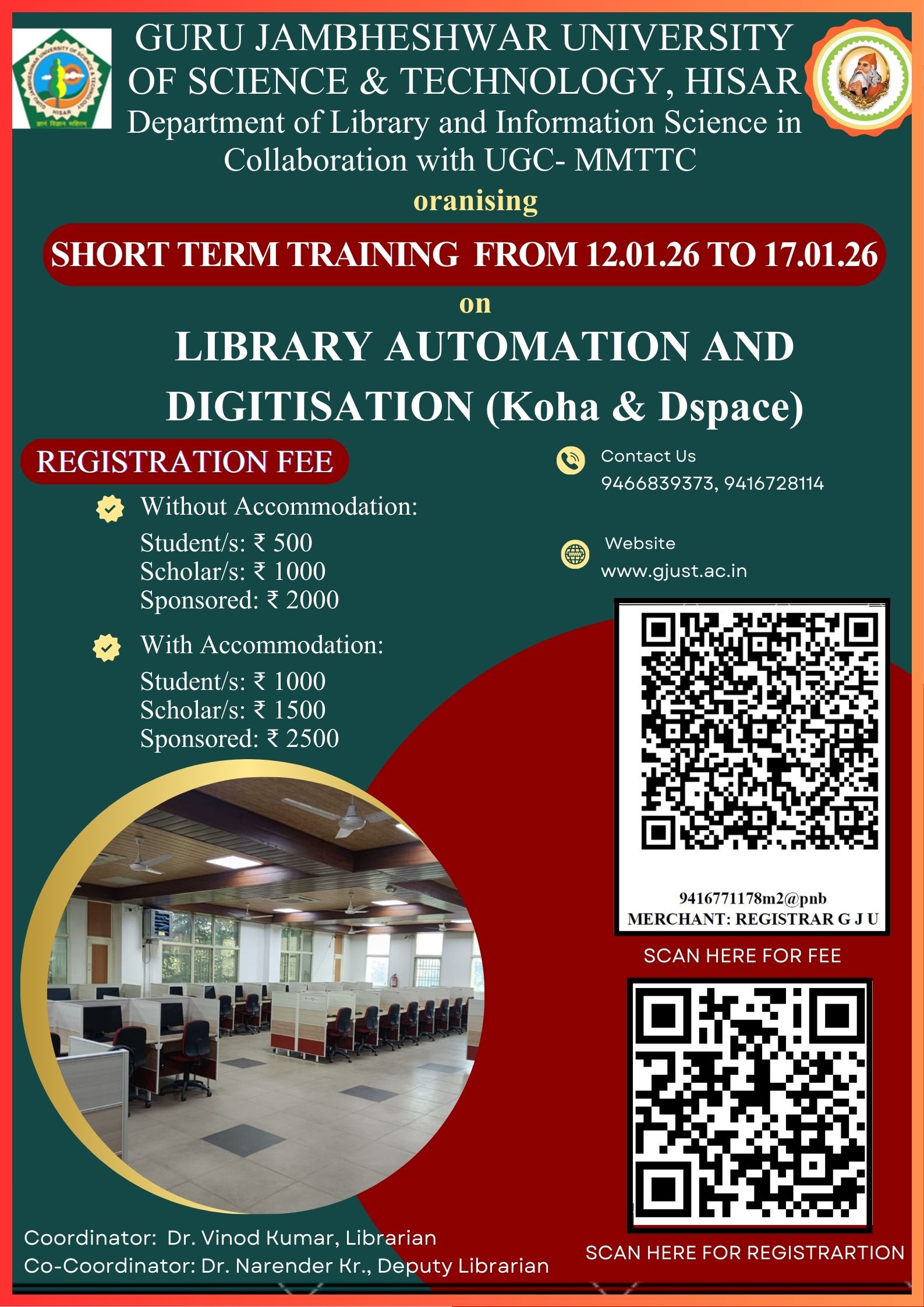 The department was established in the year 2023 under the guidance of Prof. Narsi Ram Bishnoi, Vice-Chancellor, Guru Jambheshwar University of Science and Technology, Hisar, led by Dr. Vinod Kumar, University Librarian as its founder Chairperson. The establishment of this department filled the gap in producing the skilled Library Professionals in this region. In the age of Information and Communication technology and its advanced versions i.e. ChatGPT and AI, put forth so many challenges in front of the libraries, therefore skilled professionals are capable enough to cope with these tools and accelerate the library services as per the demand of the modern students. It won’t be an exaggeration to say that during Covid-19 unprecedent challenge, when complete lockdown was declared by the government, the skilled library professionals played a wonderful role in making a bridge between classroom, teacher and library. Therefore, the prime objective of the department is to create trained Library & Information Professionals capable to evaluate the information sources and services to meet the challenges being faced by the Library & Information Centres. The programme is based on National Education Policy- 2020. It is two years integrated and who will earn one-year credentials, shall be eligible for getting the degree of Bachelor of Library and Information Science. Moreover, realizing the crucial role of emerging technology in conducting the high-level R&D, the department is on forefront since its inception.