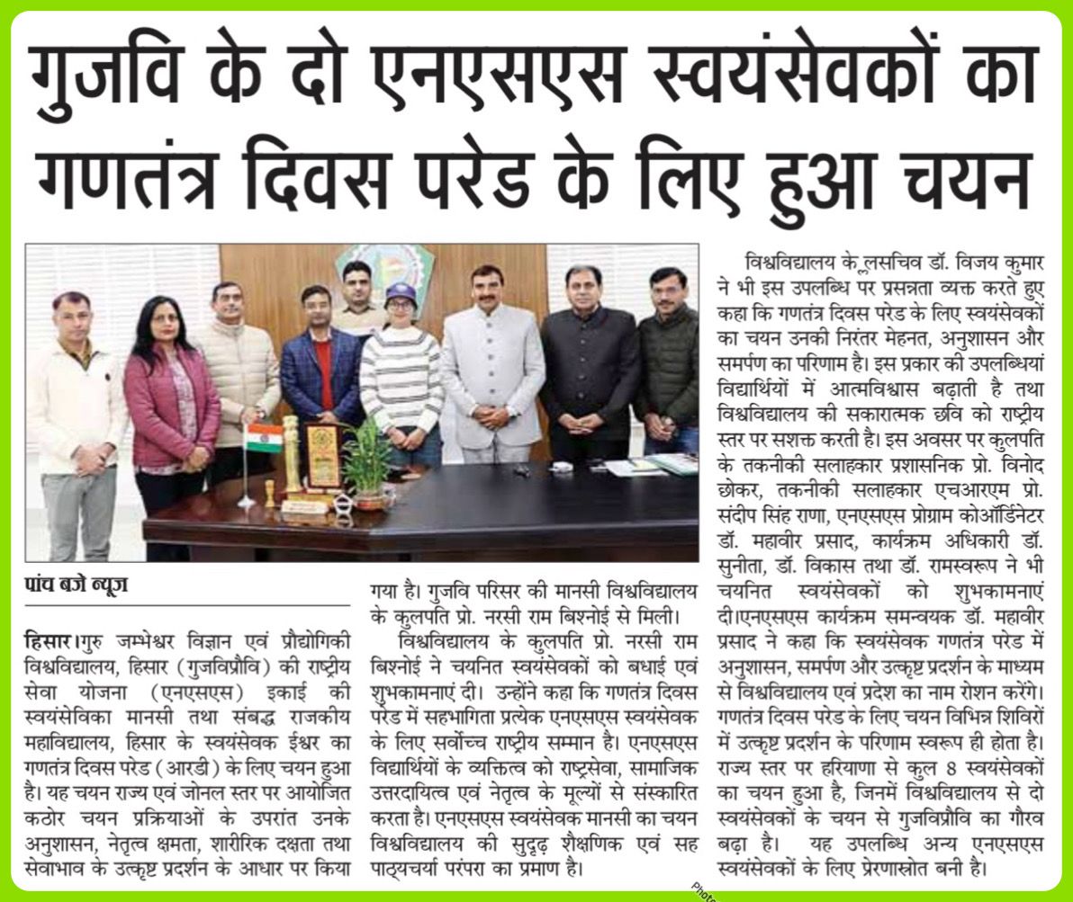 Chancellor, Guru Jambheshwar University of Science & Technology,